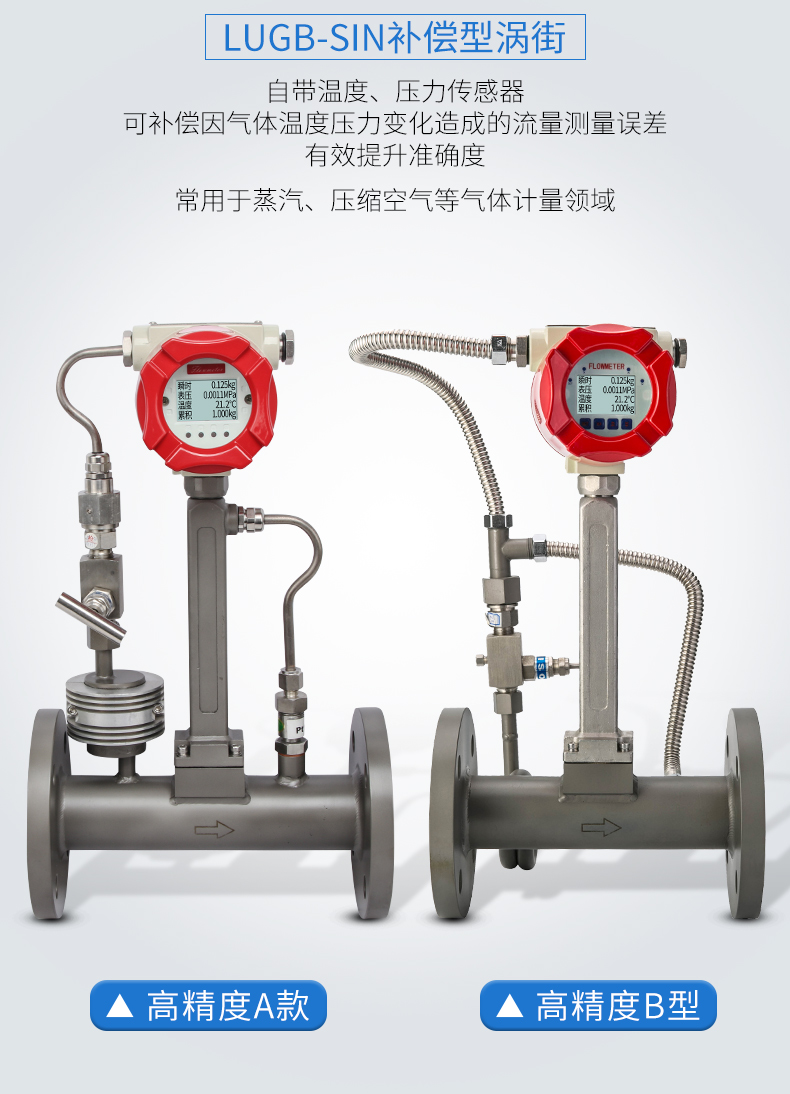 LUGB-SIN渦街流量儀表廣泛用于供熱公司、熱力公司、化工行業等行業,對壓縮空氣和一般氣體、水和液體的計量和控制。加厚本體,可有效避免現場管道振動帶來的數據波動和誤差。多用于高溫場合,例如過熱蒸汽等工況。CN5